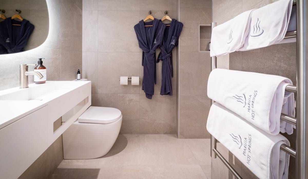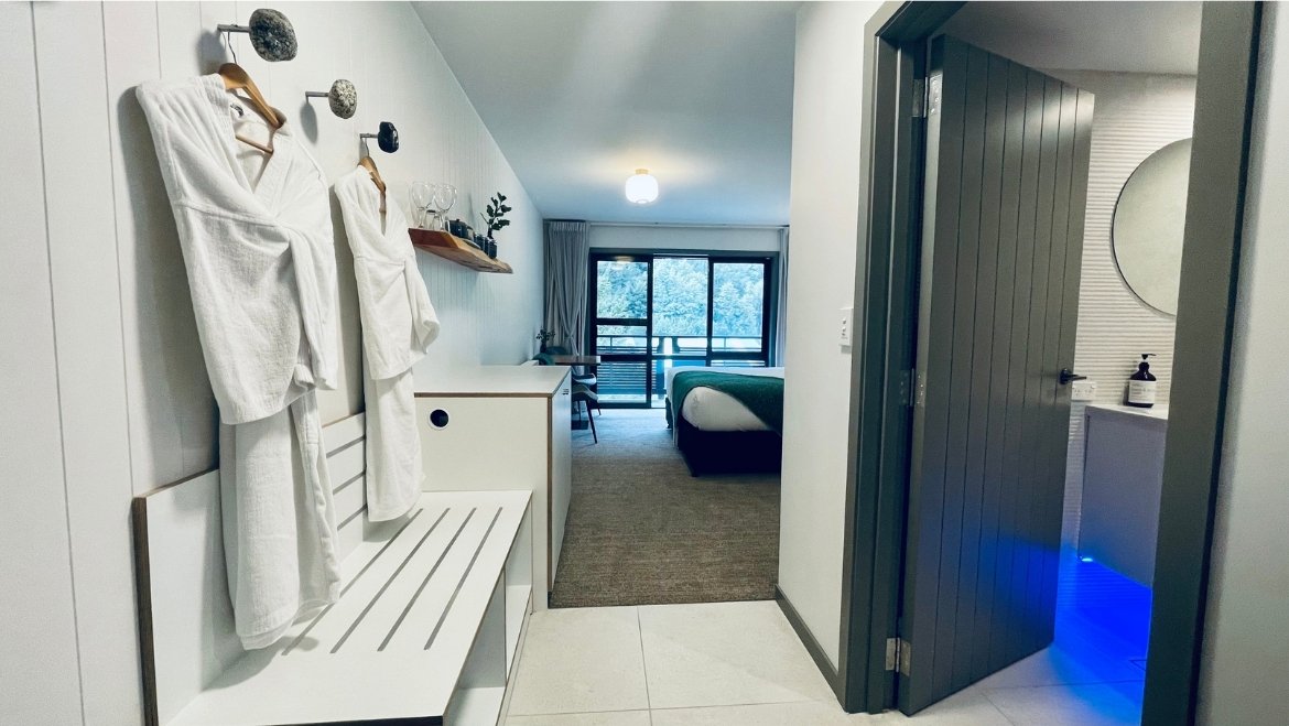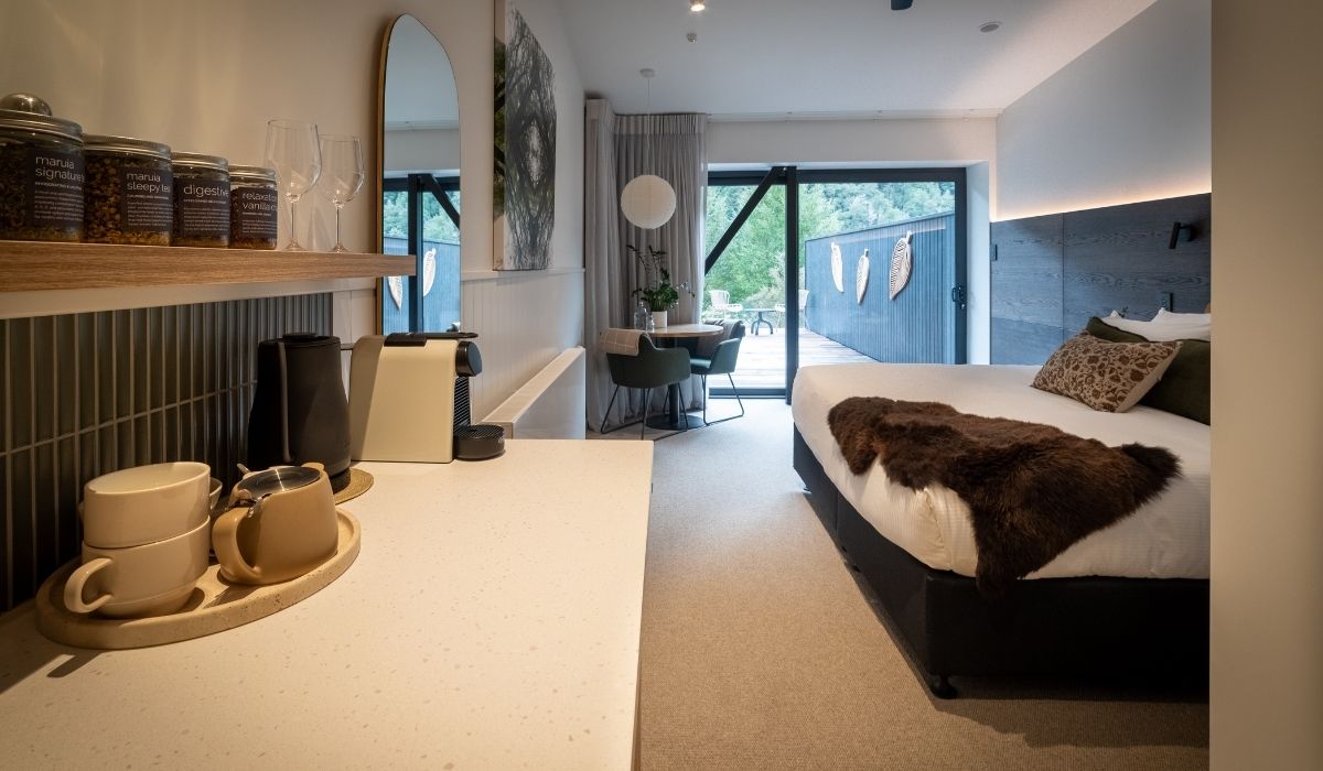 These luxury hotel rooms redefine the wellness experience with a private outdoor thermal bath fed by natural geothermal waters, set against the stunning backdrop of New Zealand’s Southern Alps. Designed with elegance and comfort in mind, each room features comfortable and cosy furnishings, curated in-room amenities, and uninterrupted views of the Maruia River and surrounding mountains. This is a truly immersive way for guests to connect with nature, indulge in self-care, and experience the rejuvenating power of thermal bathing – in complete privacy.