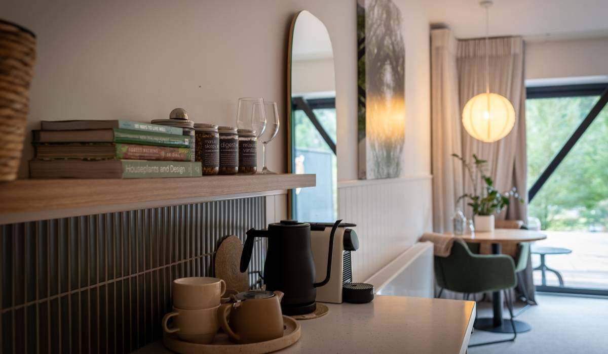 Floor-to-ceiling windows and private terraces connect guests to nature, while king or two single beds and natural details provide a relaxing and comfortable experience. Spacious bathrooms, custom-made bath products and bathing in the thermal pool area are open overnight for accommodation guests.