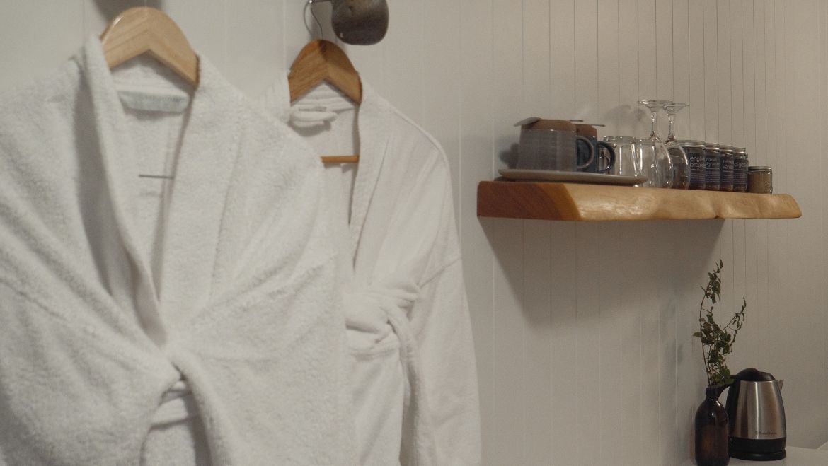 The mountain view rooms offer breath-taking views of the valley and mountains beyond via floor- to-ceiling windows, a private terrace, a plush king bed, two queens or up to three singles, and custom-made furnishings throughout, creating a tactile and tranquil space. Showers with locally made bath products and cosy robes and towels make this room a comfortable stay.